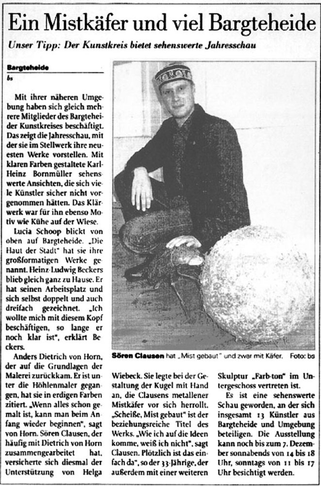 - 2003; Jahresschau des KKB, mit der Installation "Scheiße, Mist gebaut!" (zum Artikel)