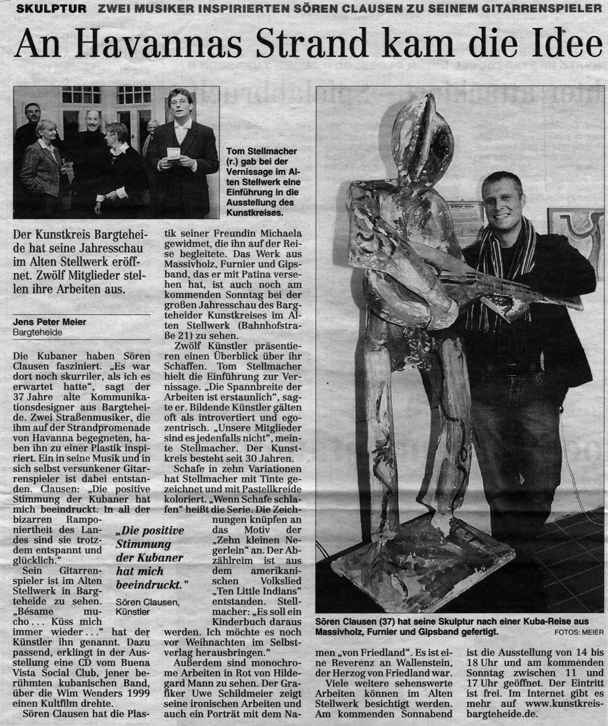 - 2007; Ausstellung von Kunstdrucken und Grafiken im Stadthaus Bargteheide; Jahresschau des KKB in Alten Stellwerk Bargteheide, mit der Skupltur "Besa me mucho" (zum Artikel)