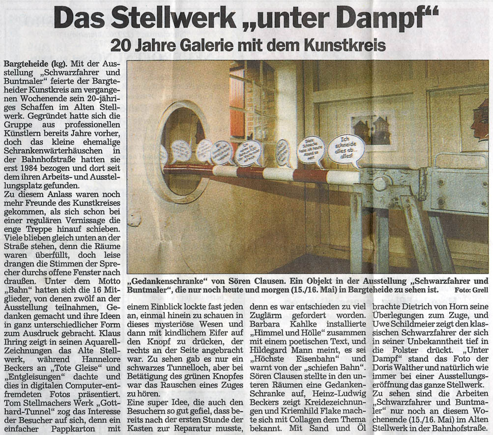 - 2004; Themenausstellung des KKB, "Schwarzfahrer und Buntmaler", mit der Installation "Gedankenschranken" (zum Artikel)
