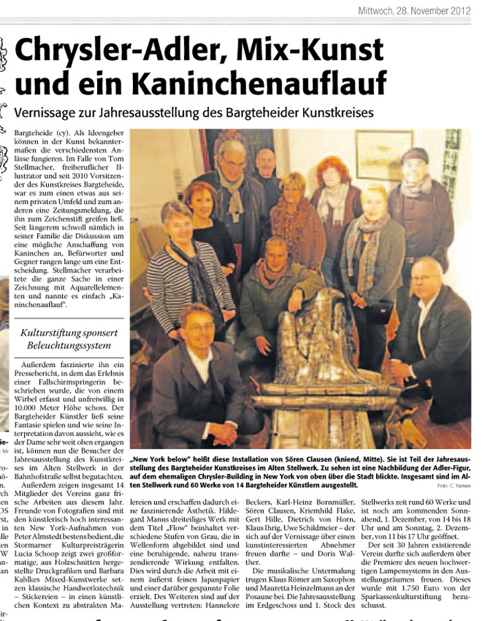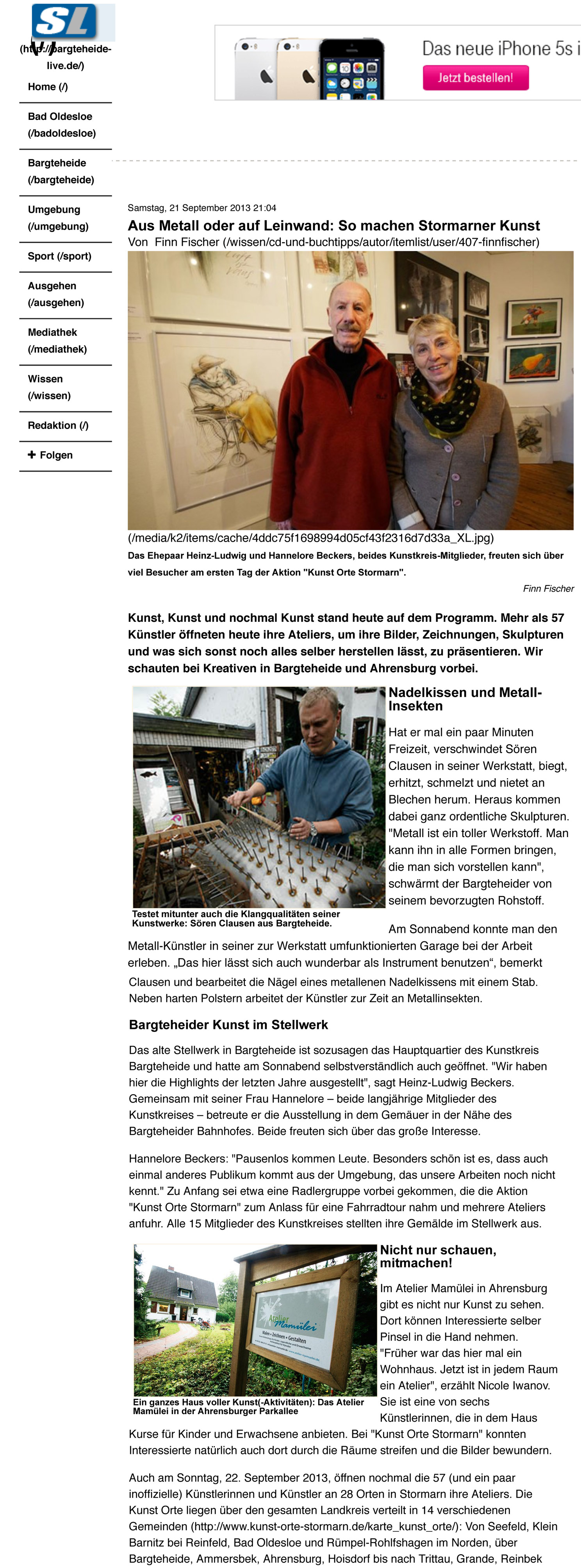 Artikel im Zuge "Kunst-Orte-Stormarn", offene Ateliers, KKB, Sören Clausen |