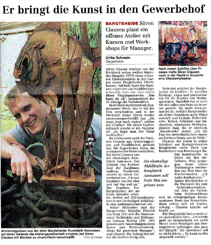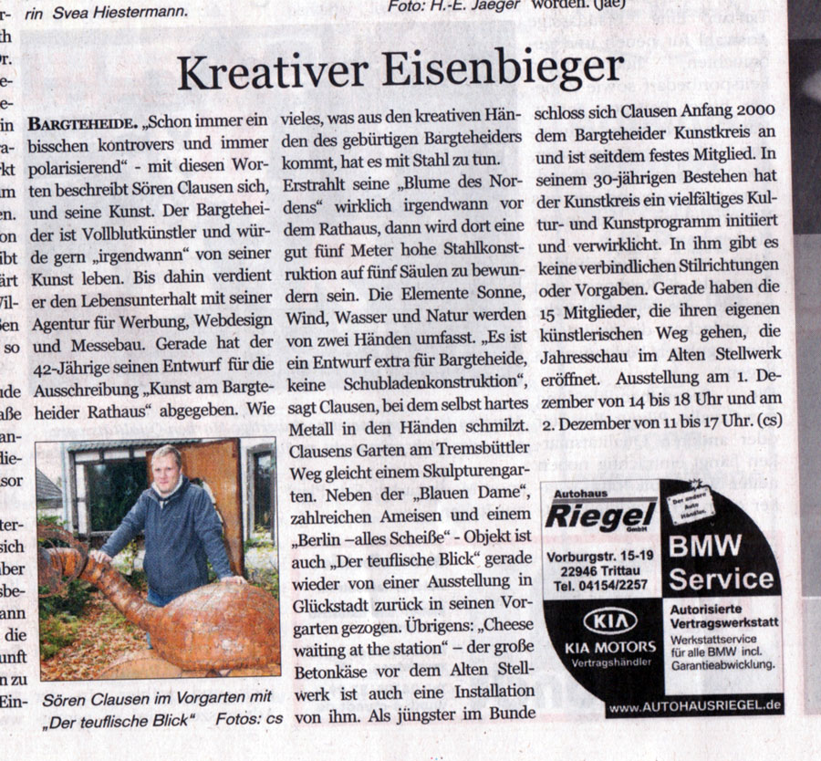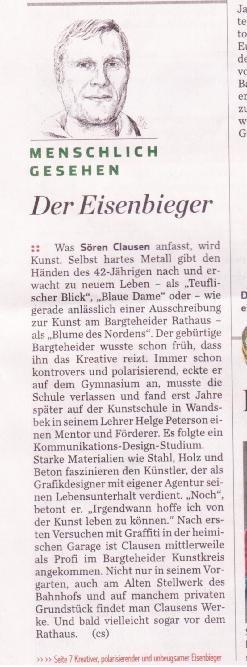 Artikel "Kreativer Eisenbieger" im Zuge der Bewerbung auf Kunst am Bau für das Rathaus Bargteheide |