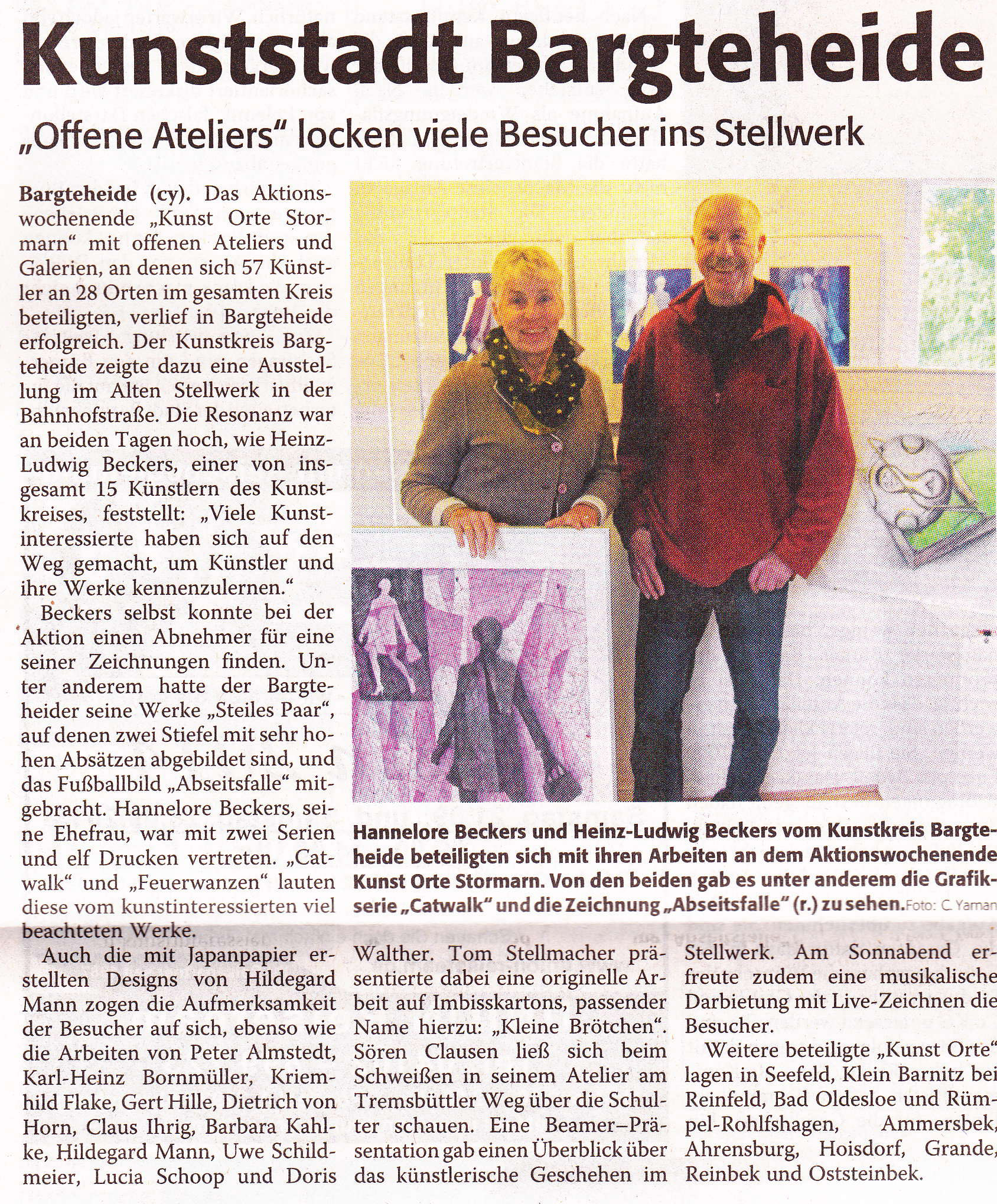Artikel im Zuge "Kunst-Orte-Stormarn", offene Ateliers, von Finn Fischer |