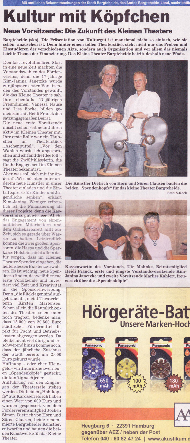 Artikel im Zuge der Kreation zweier "Kulturköpfe"als Spendendosen für das Kleine Theater Bargteheide • Seht euch auch die Fotostrecke an. |