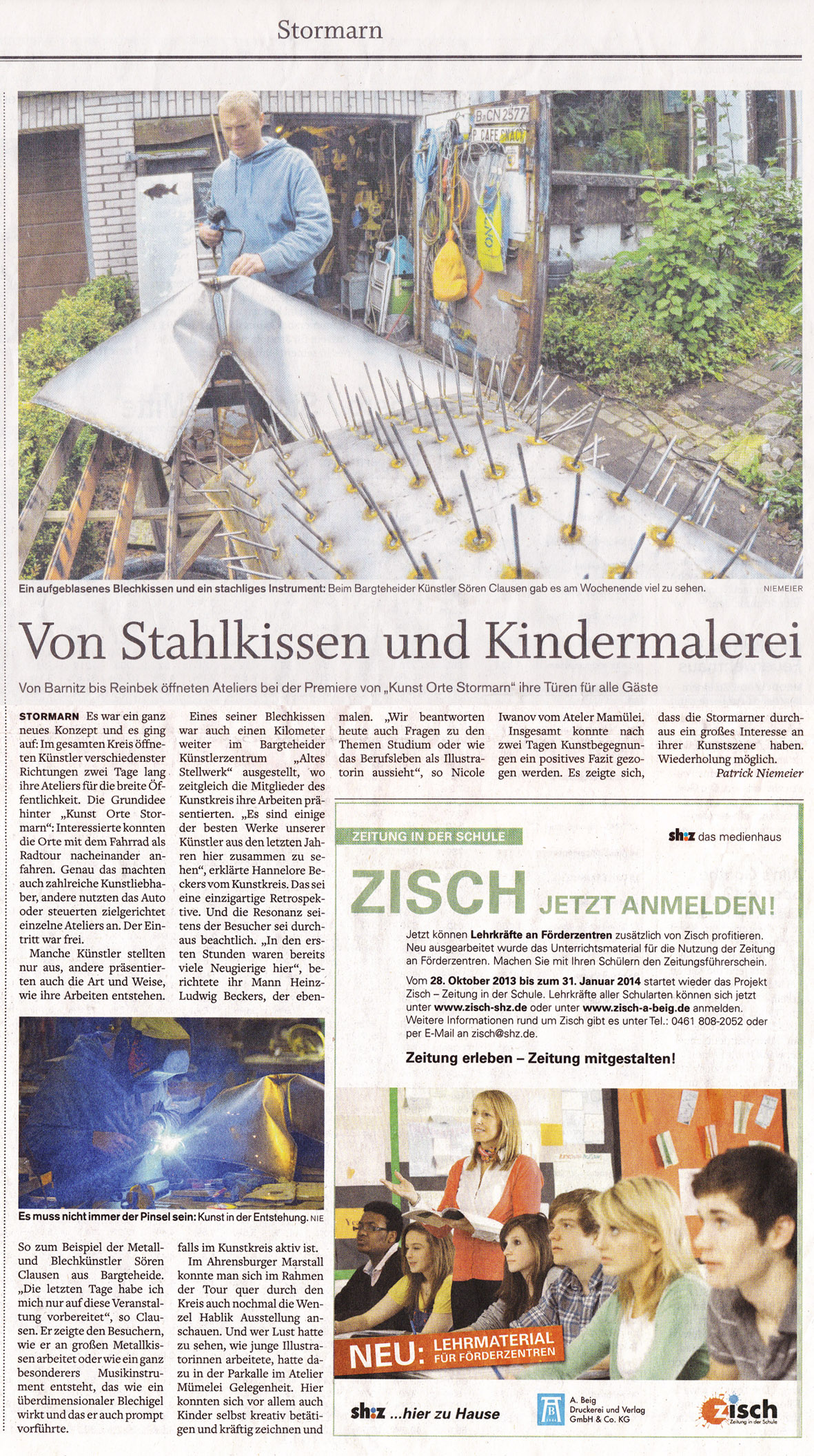 Artikel im Zuge "Kunst-Orte-Stormarn", offene Ateliers, KKB, Sören Clausen |